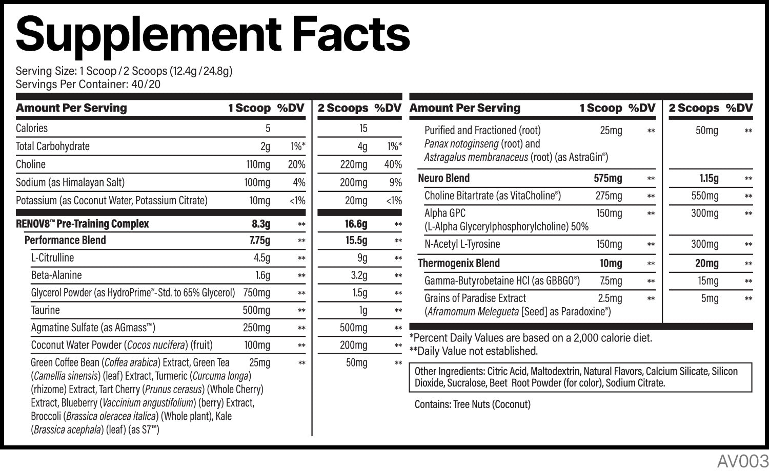 *Amount per serving (2 scoops)